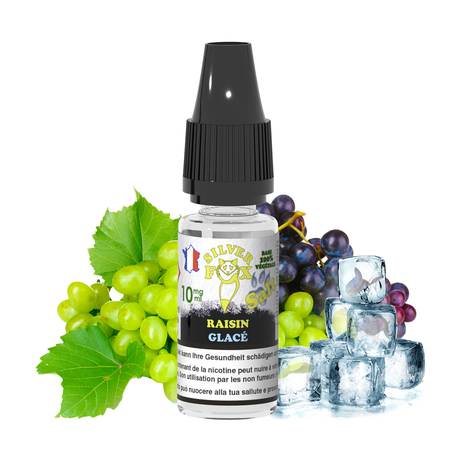 E-liquide Silver Fox Raisin Glacé - Saveur raisin glacé sucré . E-liquide aux sels de nicotine 10 ml et 10 mg/ml ou 20 mg/ml.