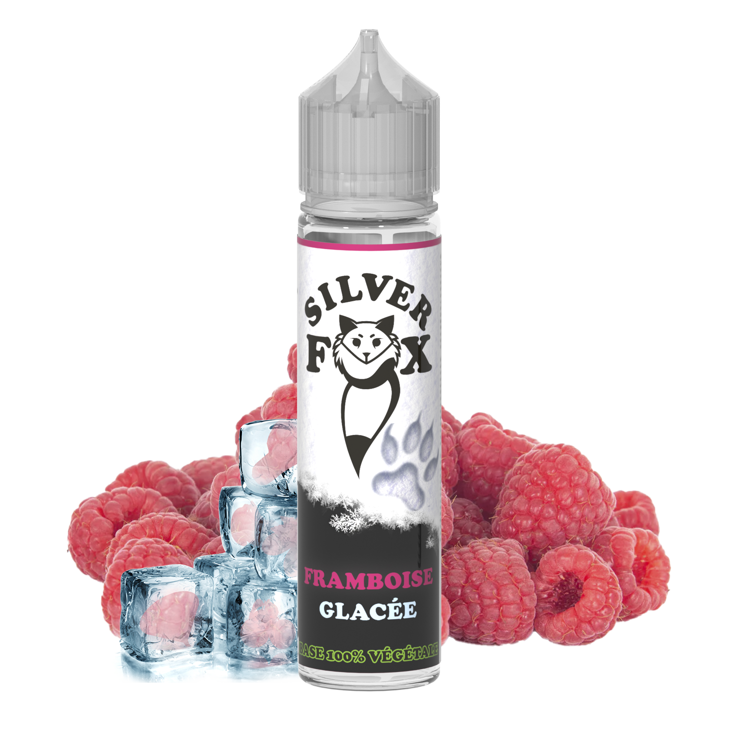 E-liquide Silver Fox Framboise Glacée (50 ml) à vaper et à mélanger. Saveur framboise glacée sucrée . Flacon de 70 ml contenant 50 ml d'e-liquide sans nicotine et 20 ml d'espace libre pour un shot de nicotine.