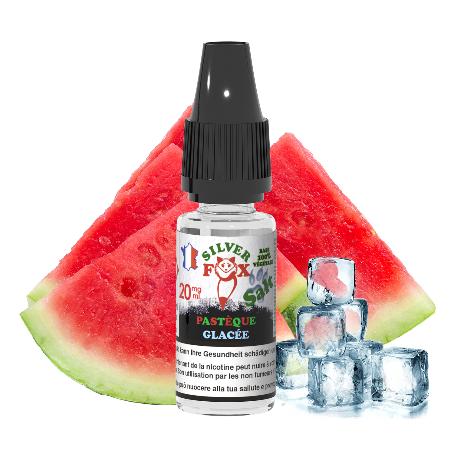 E-liquide Silver Fox Pastèque glacée ( PASTÈQUE GLACÉE ) - Saveur pastèque glacée sucrée . E-liquide aux sels de nicotine 10 ml et 10 mg/ml ou 20 mg/ml.